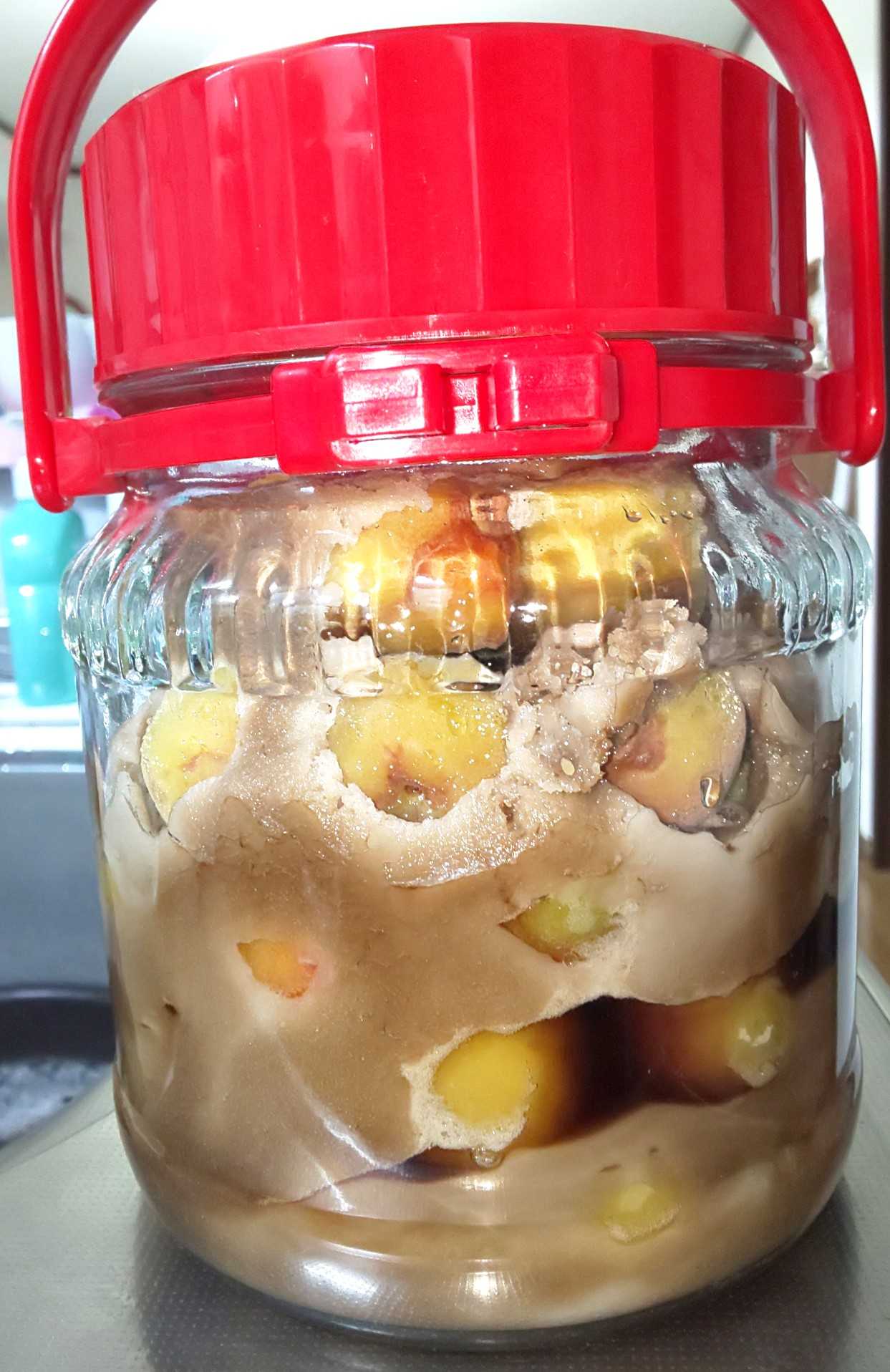 梅シロップは5日目、下の方からだんだんエキスが出て来ている。