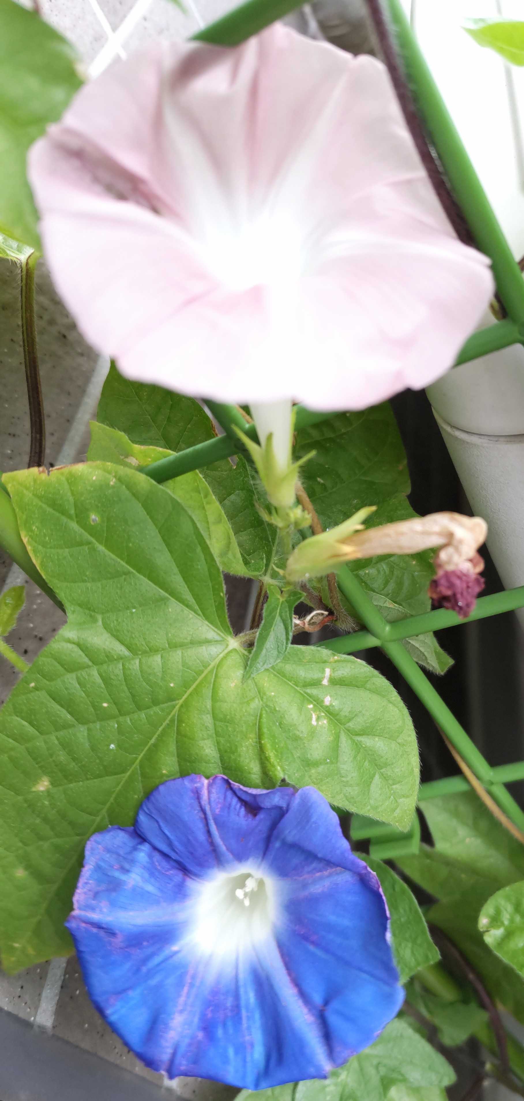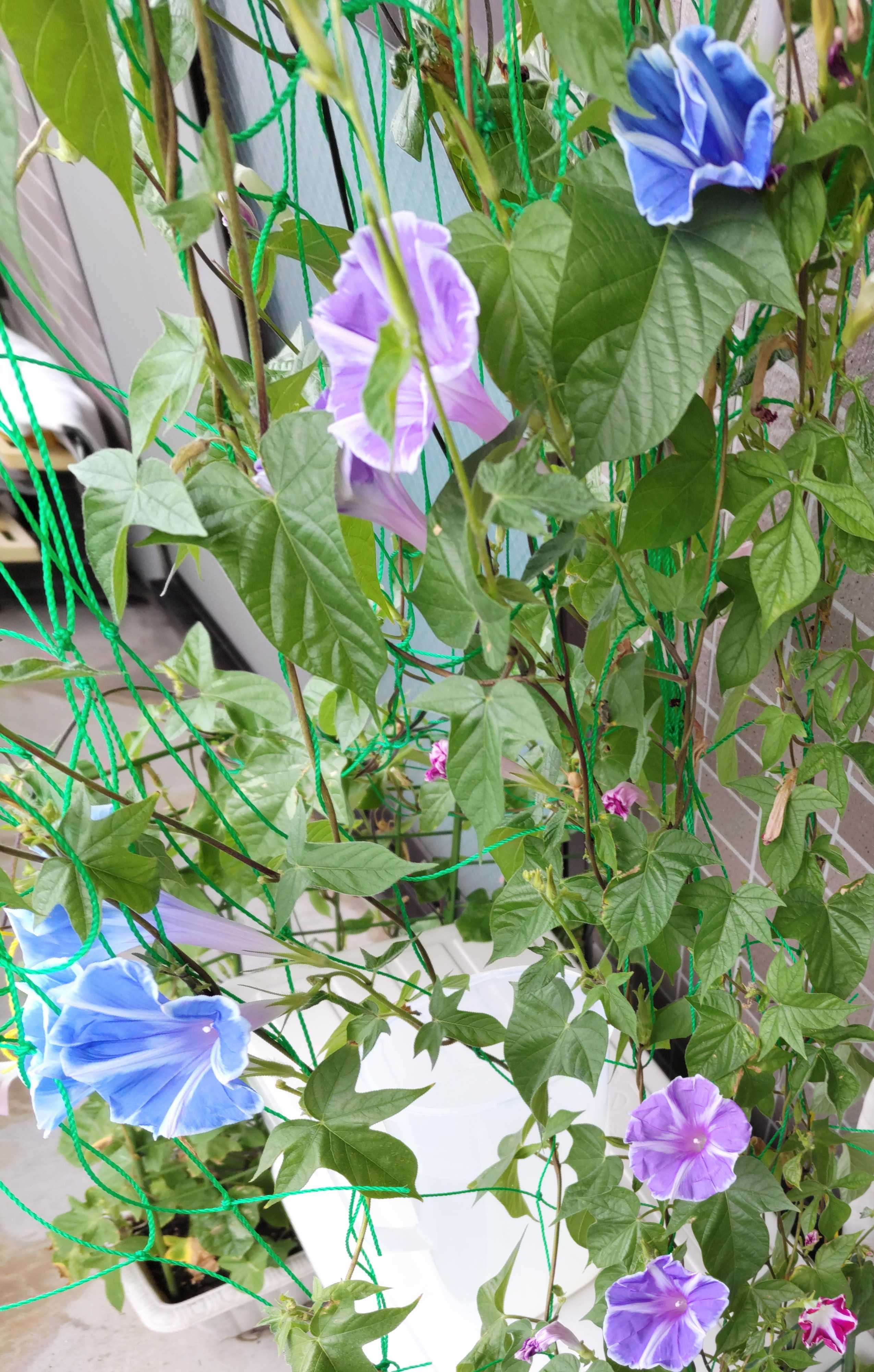 赤ピンクのアサガオは開花が遅めで昼前11時ぐらいになって最大開花すると言った具合なので、仕事の日だとどうしても咲きかけの所になってしまうのが残念だ。