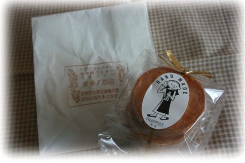 お食事のあとは、いよいよお買い物。今回はレトロ系なお店が中心となりました。まずは錦近くのタキノ酒店にて、修道院製のクッキーを2種類買いました。一見ふつ~の酒屋さんっぽいのですが、ウィンドウの「ミサ用ワイン」の張り紙にはじまり、店内にはストイックな香りの商品が多数。トラピストはもちろん、各修道院特製のクッキーが数種類ありました。まずは缶のデザインに惹かれ、京都カルメル会製の「ごふれっと」をお買い上げ。ベルギーワッフル風の焼き菓子の詰め合わせです。お味はとってもイノセントでした。あれこれ迷ってもうひとつは神戸トラピスト会のガレット。こちらは卵とバターの香りがいっぱいのママンの味。あぁもっと買ってくればよかった。お次に向かいましたのは、京都最古の洋菓子店、村上開新堂。お店にはロシアケーキと名づけられた、レトロなクッキーだけが5種類、お行儀よく並んでいます。当然全種類をお買い上げしたわけですが、私のお気に入りはぶどうジャムサンドでした。レーズンのものも美味しかったです。 以前母がお土産に買ってきた時は、少し時間が経ってからいただいたので、「???」って感じだったのですが、今回すぐにいただいて、やはり風味が違うと納得。個別包装されていても、買ってきてすぐにいただくのがベストです。できることならお店を出てすぐに食べたいぐらい(笑)。固すぎず柔らかすぎずという生地の加減は、クッキーとは異なり、ケーキと名づけられたのもうなづけます。静かな店内にいるとまるで時が止まっているかのよう。ロシアケーキに負けないようにと、私達もいつもより一層お行儀よくしてお買い物を楽しみました。