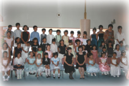 自宅教室の発表会も無事終了しました。お友達3人と一緒に開催していますが、そのうちの一人が臨月に入っていて、しかも前日に陣痛らしきものがきたというので、急遽2人で切り盛りすることになりました。当日は朝から大忙し。納品、準備、リハーサルと午前中は慌しく過ぎ、本番が始まったらもう後はあっという間に2時間が過ぎていきました。さて、今回の爆弾はなんといってもりょん王子。夏休みに練習して出場する予定が、全く練習できなくて、2週間前、夏休み最後になってようやく練習を始めたというありさま。おいおい、本当に出る気ですかぁ?冗談だと思っていたら、本当だったらしく、とりあえず2週間毎日練習。1週間前に初めて最後まで通しで弾けたという情けない状態。大変心臓に悪い2週間でした。他の生徒たちは3ヶ月以上かけて仕上げて、万全の体制で臨んだというのに・・・。自分の子となると、ある程度自己責任で問題解決できるせいかつい力が抜けてしまうようです。反省。でもまぁ、なんとかやってくれましたよ。舞台上ではもう彼に任せたという気持ちだったので、私も比較的気楽に聴けました。多少のミスタッチはお愛嬌というところでご勘弁を。今年の王子のお洋服はスーツの上着なしの状態で、ベスト着用。ネクタイは普通のタイプ。本人曰く「サラリーマンみたい」。いえいえ、最近のサラリーマンは三つ揃いなど着ないってば。姫君たちのドレスは暑さが残る季節のせいか、オーガンジー系の軽いもの、色は白やブルーが多かったです。いつも直前になると発表会ってめんどくさ~って思うのに、終わるとまたすぐやりたくなる。そして出番を待っている時の生徒たちのカワイイことといったら!やっぱりハレ舞台は大好き!
