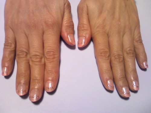 他人の手で練習させていただいた写真ですえー、…ケア後のポリッシュは…赤じゃないデス…1度目はシルバーパールだったのでぜんぜんアラがわからず今回はピンクを使用したので多少勉強になりました(ホントは赤を塗りたいんだけど…今日のところはチップでがんばります) 彼女の爪も台形で…ちと難しいでも指は細く長く(&白く)とても魅力的(←本番モデル候補大本命?)ケアを継続して少しずつ四角く形成していけたらいいなーと、思ってます…できるのかな? このときは、修正で失敗ポリッシュを引っ張ってしまったあと、修正し忘れもあり… 次回がんばります