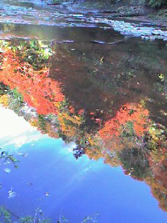 写真は川面に映り込む紅葉です
