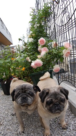 バラとパグ
