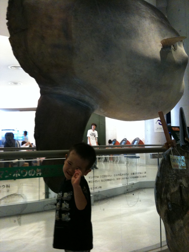 屋外のショーは諦めて、2人でサメと、マンボウにどっぷり。