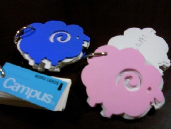 カラフル羊さんにはちょっとした文を、小さい単語帳には単語(漢字)と発音記号を書いてます。