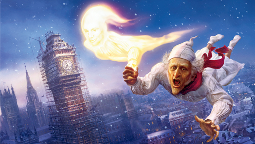 そんなあるクリスマスイヴの夜、かつてのビジネス・パートナーの亡霊が世にも恐ろしい姿で彼の前に現れるや、「お前は3人の亡霊にとり憑かれるだろう」と予言する。