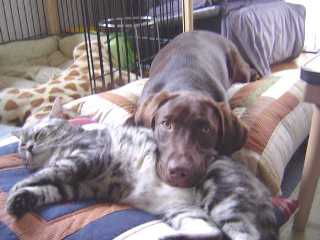 小さな悪さは日々数限りなくやられていますが、昨日は久々に平穏な1日でした。(^^)ワン・ニャンたちもまったり過ごしていましたよ。 ジュリアに顎枕にされているマイケル。 ジュリアがどいてくれたので、ホッとするマイケル。 ジュリア、クッションから降りて行きました。写真の右半分がジュリアの顔です。(^^;) <オマケ>だんなに首にタオルを巻かれて、“田吾作”みたいなジュリア。これで麦わら帽子をかぶったらカンペキです!? 今日は珍しく飲みです。行ったら行ったで楽しいんですけど、行くまでが億劫な私。(^^;)あ~、面倒です!ワン・ニャンと家でゆっくりするのが何より好きな私にとって、飲みの誘いはあまり嬉しくありません。でも、社会人として“お付き合い”も大事ですから、行って来ます!(^^) やっと週末ですね。世間は3連休ですけど、私は18日(祝)が出勤です~。(泣)土・日が休みですから、まだマシですけどね・・・。