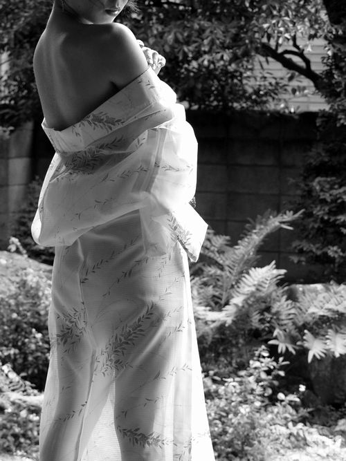 こんにちは。降るのか、降らないのか、曇り空です。それほど蒸し暑さはなく、クーラーなしでも生活は出来そうです。明日から地方に行くため今日中に撮影を終了させないと・・(^-^ゞはい、はっきり言って、焦ってます。焦りは禁物、昼休みも勿体無いけど、空腹じゃなにもできませんからね。明日からの準備もしないと・・・。こんな時にいつも心に念じる言葉「ひとつずつ、ゆっくりこなす」呪文のように・・イライラしそうになると「焦るな、大丈夫」あはは、午後からもがんばります!!魯の着物のスケ感が好きです。宣材写真にほんブログ村参加中です。