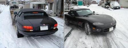 写真のアップがおくれまして す、すんません......... _|\○_ コノトオリデス! 7日のつづき~ 塗装屋のN社長から電話が入る........... 『まいど、ど~も全塗装仕上がりました........... でも、すんまへん..........;..........』 只ならぬ電話に、いやな予感が? やっぱり!!! なんと、仕上がったバイパーを陸送屋さんが引き取りに来て 積載車に乗せる際に、なっ、ななんと!!!!! 右側サイドステップを “ブツケテ”しまったらしいい......................(゜Α゜|||)GABI-N!! もちろん、陸送屋さんの弁償ですがサイドステップの値段を聞いて陸送屋さん、ビックリ!なんと、約80万え~ん!!!不思議なことに、左側は約120万円?..........なんで?陸送屋さん、かなりびびってました.........(((((゚ω゚;)オオォォォォォォォーこの事をオーナーに伝えると『あっ、そう。』とあっさり?この程度のことでは動じないみたい...........流石!きっちりと、お詫びをして一件落着...........フゥ~2ヶ月待ちで、ようやく本国アメリカからサイドステップが届き装着修理完了です。細心の注意をはらいながら慎重に~.......慎重に~...........う~ん、黒光り!吸い込まれそうな、ふか~い黒................(癒し)かっちょえ~(*≧▽≦)迫力も増し!!!赤より“悪魔”っぽい.......(ボソッ)改め “黒い悪魔” 誕生!この先 PCS でいつまでも、この輝きを維持しつづけることでしょう~やっぱ、“黒”ってイイですよね~♪本年も宜しくお願い致しますm(__)m ▼▼▼ よい年になります様に・・・・・ ^^ゞ
