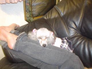 今日は仕事がお休みだったので朝からパソコンでした。買い物のページではパスワードの認識されるのに、楽天カードを作るためのパスワードが認識されず何度も再設定の繰り返しでした。この間ずっと、足元にはゴールデンのクーちゃん、ひざの上にはトイプーのハノンとアトムが朝寝?!キーボードを打つ腕がアトム君の枕です。最近はお休みの度にPCとの格闘が多く、遊んであげることが少ないので我慢我慢です(^^;)お腹がすいたので時計をみると、なんと午後二時を回わっているではありませんか。わんこ達にご飯をあげたものの、私自身食べ忘れてました。一端、カード登録は先送りにすることに・・・テスト期間中で帰宅の早かった娘と、レンジでチ~ンの昼食(~~;文句を言わない娘の感謝です!!今思えば、飽きもせずによくぞ繰り返しなぁと実感してます(よく言えば集中力あり???)周りに言わせれば(時間の無駄使い!!!)とのこと。さすがに、今になると問い合わせる気持ちもなくなり本当に先送りになってしまいました。買い物をしたり、わんこの画像をアップできるようになるのは、いつになることやら・・・ハノンは今も、私のひざ上でいびきをかきながらお休み中。
