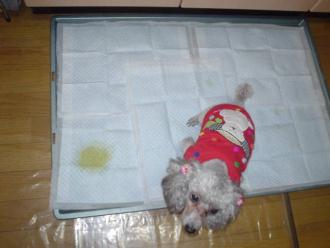 今日は朝から、ネンネ以外はトイレの中にいることが多くなりました。オシッコも出ないのに・・・いよいよ近づいて着ましたよね!!!そのせいか、いつも食べていたハノン用のフードは食べませ~ん (; ;)ノンママがやせ細った訳ではないので、そんなに心配はしてないんですけどね(@@)でも、食べなくなって5~6日経ってます。なので、いろいろと試した結果・・・・七歳のゴールデンが食べている老犬用フードならばガッついてたべるのでハノンのフードに混ぜてみることにしましたぁ~(*_*)V どこまでものん気な私(;.;)その結果、見ての通り (`0')#食べたのは老犬用フードだけ!!! (容器の中の薄い色のフードが老犬用)見ずらくてゴメンナサイ(>