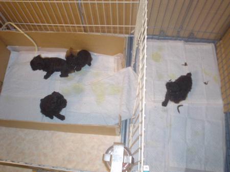 昨日の勤務を最後に、少しの間、専業主婦に転職です♪ どんなことが待っているのか、とても楽しみです☆今日はベビーが生まれて、早、5週間が過ぎました(^-^)兄妹ゲンカも一生懸命にやってます。4匹それぞれの個性やクセも見え始め、観察が更に楽しくなりました♪みなさんからのアドバイスのお陰で、ココまで成長することができました!!感謝、感謝です♪♪これからも、どうぞ、宜しくお願い致します☆☆初めての育児なので、こんなことに驚いてしまいました・・・~O~/多頭飼いの躾は、楽に躾ができると言う話を度々聞いていましたが