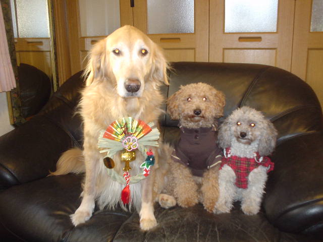 明けましておめでとうございます。今年は更新できる日を増やすぞぉ V~=~Vカンバリマッスル!!! (寒かったですね (*_*;)我が家は毎年寝正月で、クーちゃんも相変わらず、お気入りのソファーで寝正月。実は、去年、我が家に迎えたアトムと、7年も先にいる先住犬のクーとの立場が逆転したかもしれないんです。クーが餌を食べ終えた後に、ハノンやアトムの餌の回りに近寄ると、真剣に吠えて耳などを噛むんですよねぇ(@_@;)食い意地が張ってるだけですかね(^-^;)可愛そうになるくらい、クーはアトムに遠慮するんです。やっぱり男の子って強いんでしょうか???ストレス溜まってないかなぁ~?!クー、ガンバレ~!!!!今日もラブラブショットを乗せてみました(~O~)ハノンはすぐに人やクーの近くに寄って行く甘えっ子ですがちゃんと育児してくれるかなぁ???