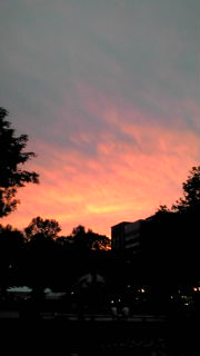 昨日の夕焼けは燃えるような朱色だった片頭痛がまだ治らないので医師に紹介状かいてもらい脳外科に行ってきます
