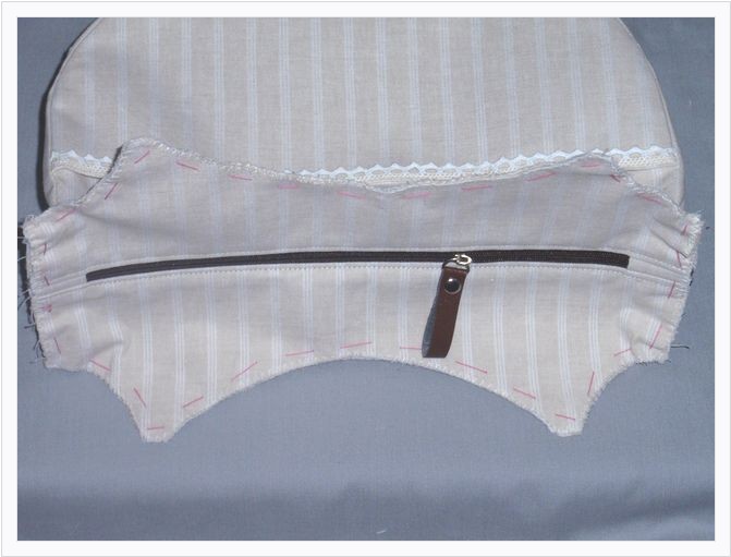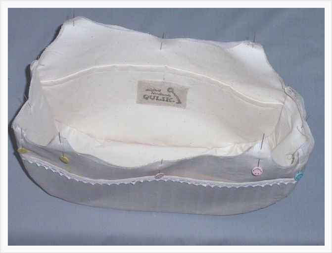 本体&マチの縫い目 て、マチ針などで留めます。