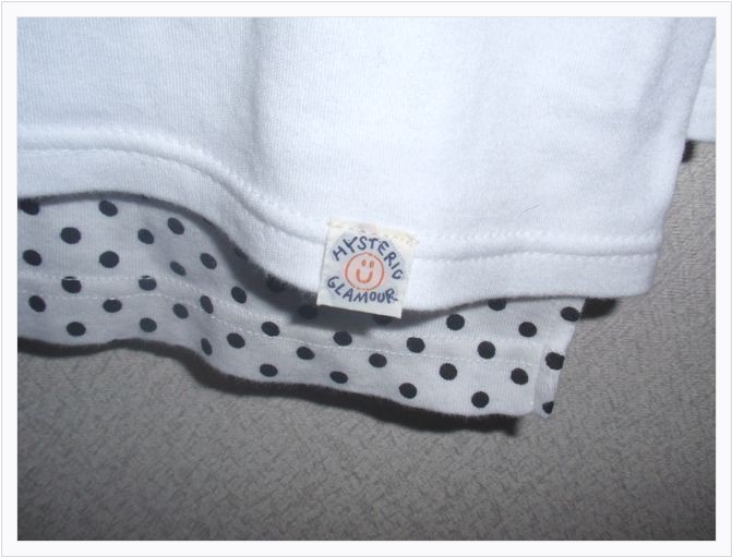 元はネックについてた ブランドタグを、裾に 縫いつけてます。ビンボー性大発揮!!爆