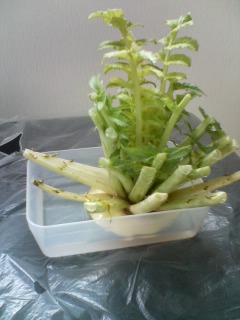 君は何処まで伸びれば気が済むの???調理の過程で残ってしまった大根の葉の部分。。。なんとなく水に浸けていたら成長してしまいました植物の生命力って凄いね(汗)へたれることなく与えられた現状で最大限の努力と成長………少しは見習わないとなぁ~。。。