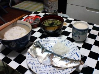 自炊シリーズ!!!今日は鯖と大根おろしで純和風定食を作ってみた☆昨日あるある大辞典で目の疲れ等にDHAが良いってやってました。DHA含有量の1位が大トロだったけど経済的に無理って事で、2位の鯖を買ってきたのだ。一人暮らしになってからずいぶん焼魚等を食す回数が減ってしまっていたんですが………やはり日本人の味覚には魚って合うんだなぁ。。。って実感した(笑)これからはなるべく食生活の中に魚を取り入れていくぞォーーー(>_<)