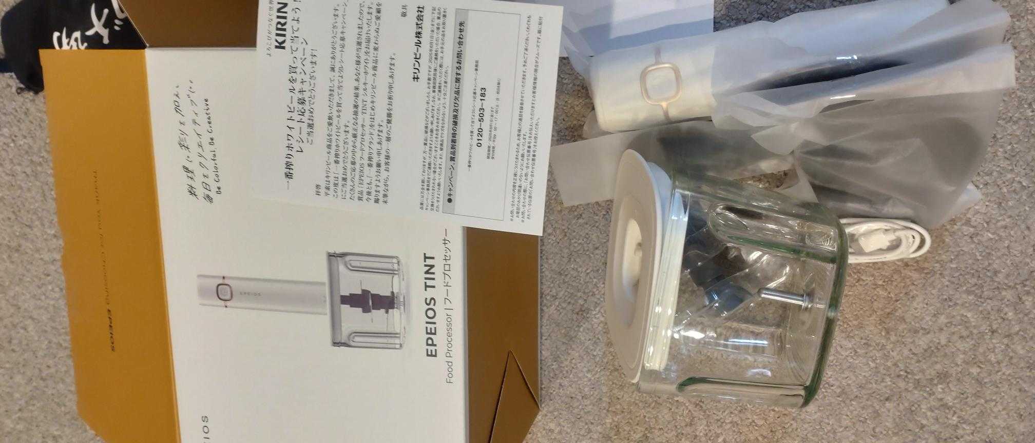 PAYPAYポイントやポイントカードに当選したりすることは多いけど(以前のブログ)久しぶりに物品が届いた。(以前のブログ)フードプロセッサーだ。キリンさ~ん、ありがとうございます。うれしいけど収納場所に困っちゃうなぁ。しかも強化カラスの容器で重い。
