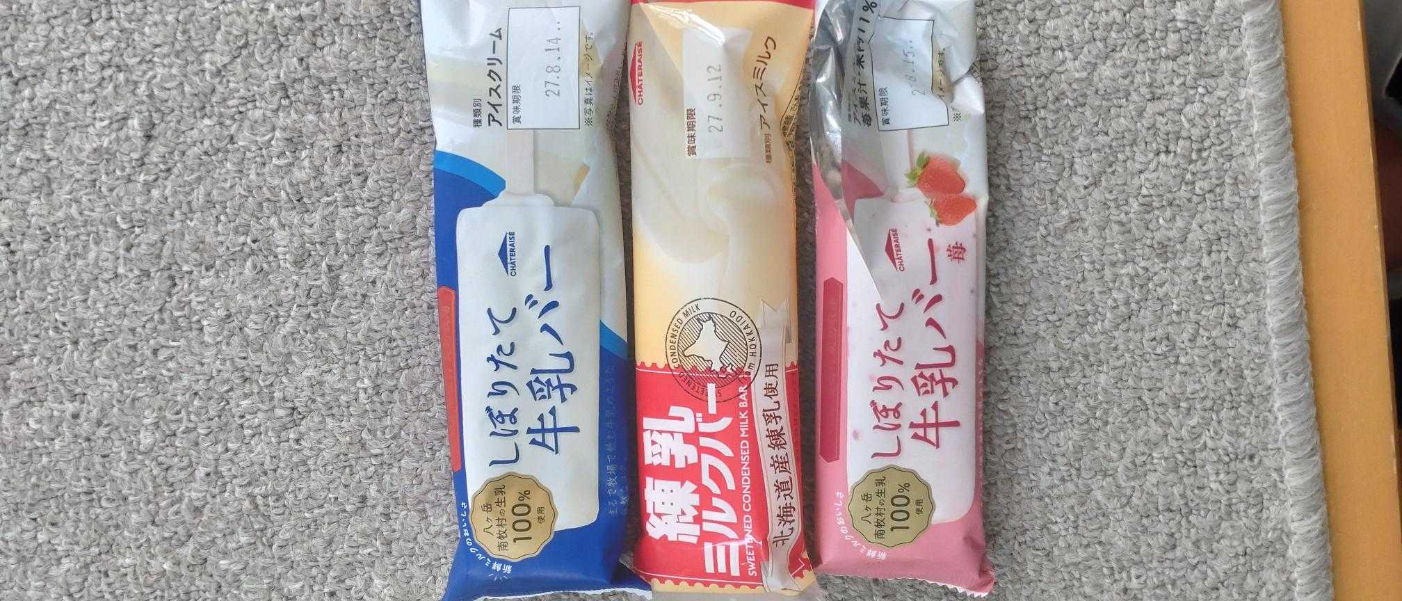 1本80円前後でお買い得なシャトレーゼのアイスクリーム。(箱買いだともっとお得)いろいろな味が試したいから1本ずつお買い上げ。どれも濃厚でおいしい。ただし溶けるのが早い早い。持ち帰るときはクーラーボックスとドライアイス(氷より冷えるので)は必須。