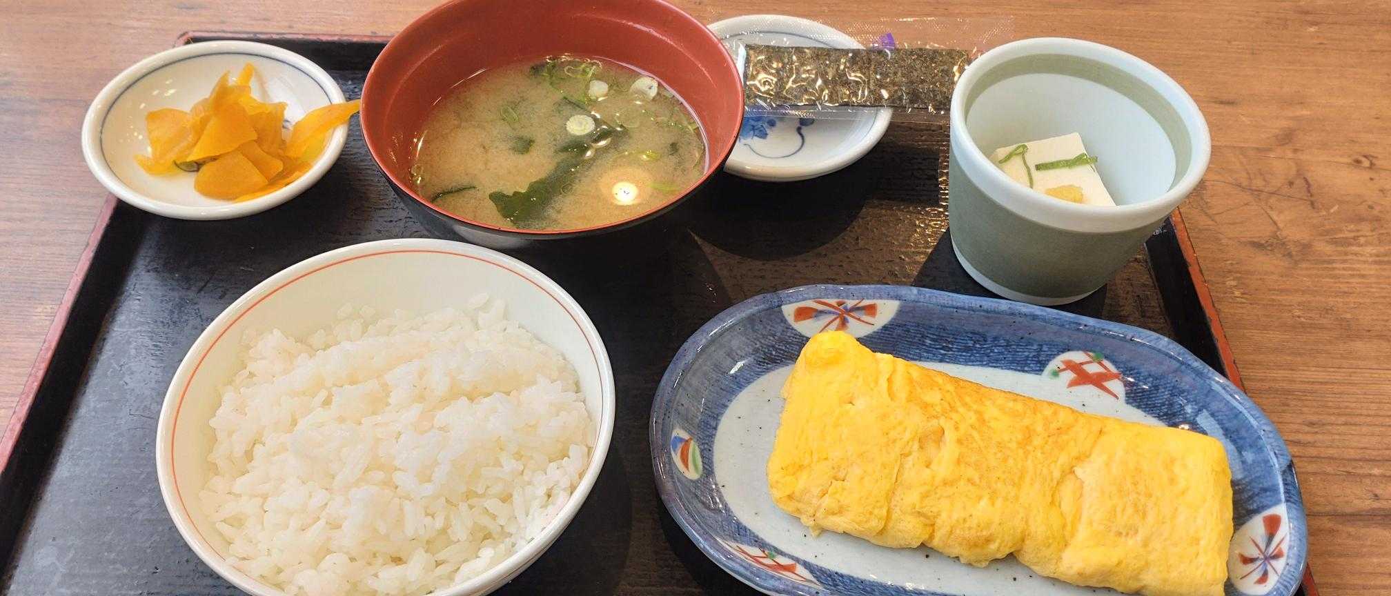 エンジェルの部活の練習試合のため遠方の相手校に送ってからよく喫茶モーニングに行っていた。(喫茶モーニングのブログ)和食のモーニングもあったけど(以前のブログ)今回は定食屋の朝定食を食べに。熱熱の出汁巻き卵定食。ふわふわで美味しかった。お得なご飯おかわり無料。