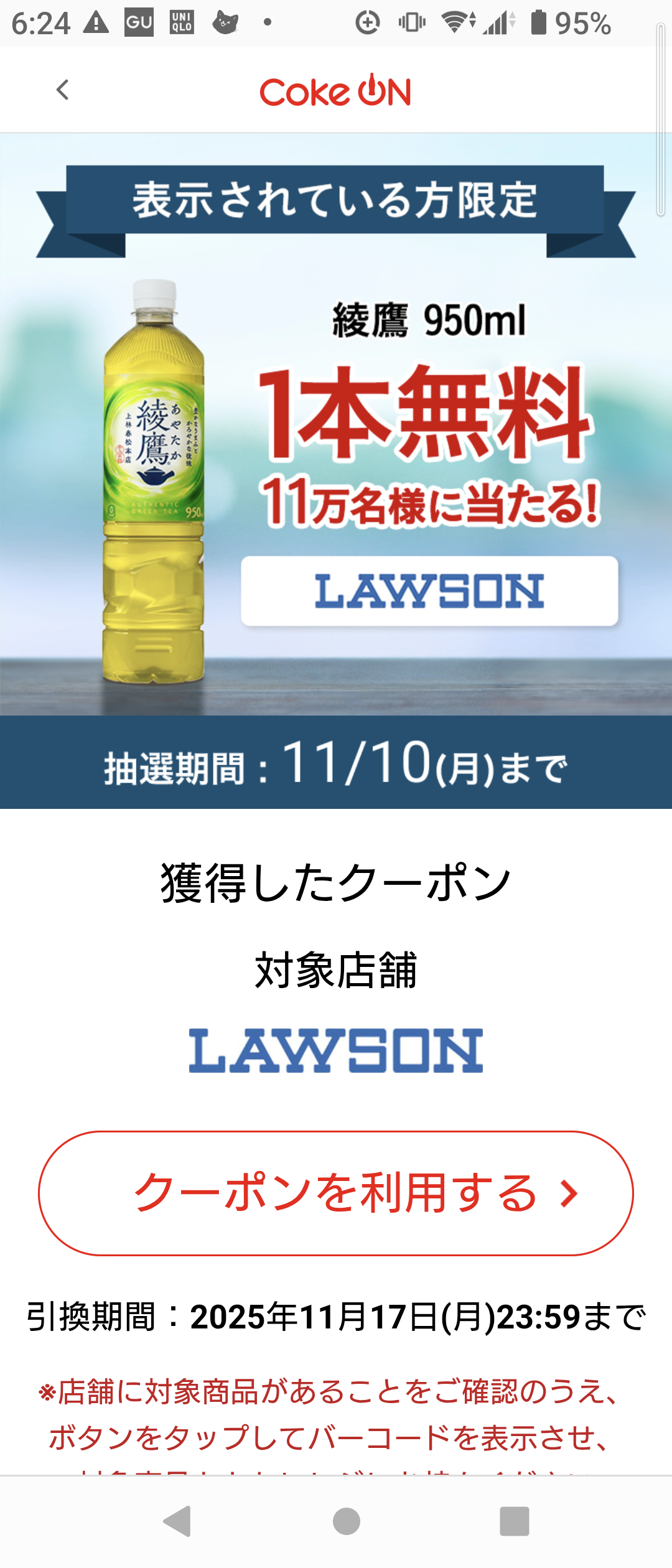 うれしいドリンク券に当選!(以前のブログ)コカ・コーラさ~ん、いつもありがとうございます。残念ながら近くにローソンがないのでできましたら他のコンビニでも引きかえできるとありがたいです!