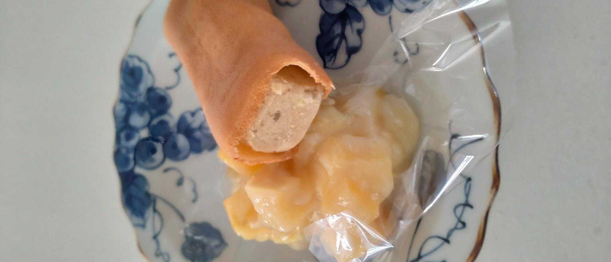 赤色の包装紙が一般的だと思う崎陽軒の真空パックシウマイ。関西版では黄色だった。醤油いらず、練りカラシで。美味しかった。