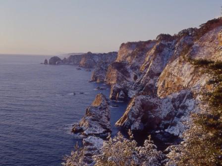 今日は、若干緩んだものの、つい最近、本当に寒い日が続きますねぇ・・・(;^_^A先日までの大雪は、解けることを知らずに、北山崎もご覧のとおり、雪化粧をしてしまいました!その光景はまるで、墨絵を見ているかのようです!静寂の中に、打ち寄せる波の音がこだまする光景は、本当に神秘的!そんな、冬しか見ることのできない景色をぜひ見にいらして下さい!