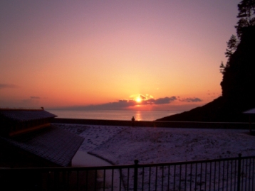 新年明けましておめでとうございます。本年も何卒よろしくお願い申し上げます。早速ですが、気になる初日の出は・・・・・、・・・・・この通り、見事に上がりました!!!数日前の天気予報で、ちょっと心配になりましたが、水平線近くの雲間からチラッと顔を出し、数分後に勇壮な太陽が出た瞬間、多くのお客様から歓喜の声が上がっておりました!本当に素晴らしい初日の出でした♪この度泊られたお客様も、まだのお客様も、ぜひこの素晴らしい光景を見にいらして下さい!