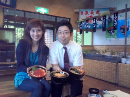 夏のIBCラジオ恒例企画♪「IBCラジオの三陸キャラバン」が今年も7/5~9に三陸を駆け抜けます!久慈市をスタートした、笑顔がとってもチャーミング(死語?)な風見好栄アナ(あ、ブログやっているようですね♪)・・・・・が率いるIBCのキャラバン隊!野田村や普代村を経て、辿り着くは、「北山崎」など、世界に誇れる海岸美を持つ、わが村、田野畑村!!サッパ船アドベンチャーで約200m級の断崖を仰ぎ見たり、漁師の巧みなハンドルさばきで巨岩の間をすり抜けたりと、大興奮のレポートの後に辿り着いたのは・・・・・、当館の運営する「山海ろばたハウス」!こちらは田野畑村で獲れた海の幸を豪快に炭火で食べ放題できるレストランです♪詳しくはこちらを見てね♪いよいよラジオの中継が始まり、途中私も緊張しちゃって何話したのか、一部記憶が飛んでしまいましたが、とりあえず、なんとか無事に終了。。最後にみなさんで、海の幸を焼き焼きしたり、4種の丼もの(各1,000円!!)ムシャムシャ食べて終了となりました!風見アナ本日はありがとうございました!まだまだ旅路は続きますが、引き続き頑張って三陸の魅力をどんどん伝えて下さいね!がんばれ風見!がんばれIBC!あ!そんな一日の総まとめはこちら♪