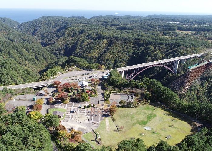 田野畑村内に架かる、高さ120mの「思椎大橋」&「道の駅たのはた」周辺も三陸道の工事が本格的に始まりました。(田野畑村HPより)まずは、右側の宮古よりから新たに三陸道の橋の工事が始まりました。また、道の駅の中央の旧レストランの建物の取り壊し作業も始まりました。あともう少しで、左側の産直プラザとたのはた食堂の建物も取り壊しが予定されています。今の建物のでの営業は、2月3日(日)までとのことです。今後は、臨時の仮設店舗で営業となります。(写真右側奥の駐車場になります)ここからちょっと、のぞいてみると・・・120mの高さからなので、かなり怖く感じます。山の谷間な為に浜風も時より強く吹くので、難工事になりそうです。(今現在、開通時期は未定となっています)