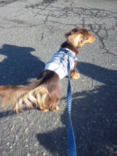 ライちゃんのおさがりだったからユルユルでしたが、圧迫感がなかったせいか固まる事もなく、散歩を楽しんでいたようです(^∀^)