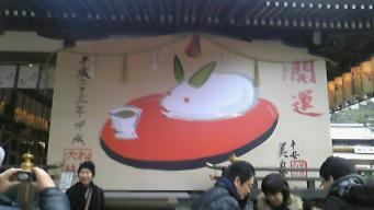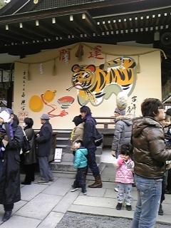 元旦は必ず家族で御節を食べて3時頃から初詣に行くのが我が家の年の初めの恒例行事!お酒の神様で有名な 『松尾大社』 へ行くのです。入り口正面の大きな絵馬が毎年楽しみなのですが、今年のはこんな感じです月に一回「亀の市」と言うフリーマーケットもやってます。