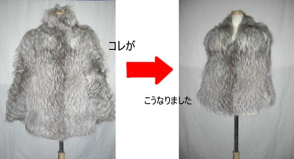 シルバーフォックスの正真正銘の毛皮のコート。今では叶姉妹位しか着ないだろうこのデザインもバブル全盛期には流行ってたんですこのままじゃこの先着る事なんか絶対にない!なので・・・思い切ってリメイクしました。お袖を取って丈を短くしてetc・・・かっわいくなりましたよ~