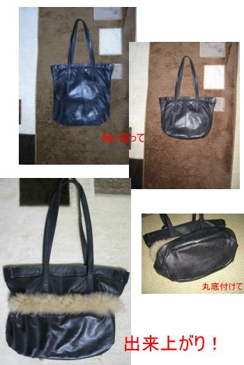 お勤めしていた頃、とにかく荷物が多い仕事でね。。。牛革の丈夫でたっぷり入るカバンが欲しくて当時結構なお値段で買っただけに捨てるに捨てられんと18年!屋根裏でぐっすりと眠っていたのを見つけたのよくぞカビも生えずに・・・と、とても愛しくなり復活させてあげるぇ~と俄然張り切ってリメイク! ファーは取り外し自由