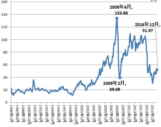 ・本邦2016年の「経常収支」分析項目実数前年対比項目紫は通関ベース ・経常収支 20兆6,496億円+4兆2,370億円 2年連続の黒字幅拡大 2007年24兆9490億円以来の高水準 ・貿易・ サービス収支 4兆6,045億円 +6兆9,117億円 黒字転化 貿易収支 5兆5,793億円 +6兆2,081億円 黒字転化 (輸出) 68兆8,853億円米国:14兆1,431億円中国:12兆3,619億円アジアNIEs:15兆952億円EU : 7兆9,821億円中東: 2兆5,847億円 ▲6兆3,800億円4年ぶりの減少 前年比▲8.5%商品別には鉄鋼▲8,248億円、▲22.5%、自動車▲7,132億円、▲5.9%地域別には対米国▲1兆815億円▲7.1%対中国▲8,615億円▲6.5% (輸入) 63兆3,060億円中国: 17兆 164億円米国: 7兆3,089億円アジアNIEs:10兆457億円EU : 8兆1,361億円中東 : 6兆5,012億円 ▲12兆5,881億円2年連続の減少 前年比▲16.6%商品別には原粗油▲2兆6507億円、▲32.4%、LNG▲2兆2,302億円、▲40.4%など燃料価格下落による地域別には対中東▲3兆701億円、▲32.1%対中国▲2兆4,124億円▲12.4%対米国▲7,509億円▲9.3% サービス収支 ▲9,748億円 +7,036億円赤字幅縮小。 旅行収支が1996年以降で過去最大の1兆3391億円と寄与訪日来客数は前年比21.8%増の2千4百万人超と中国、台湾、香港、インドネシアなどアジアからの旅行者が増加。その他サービス収支の赤字幅縮小 ・第一次所得収支 18兆1,360億円 ▲2兆5,166億円黒字幅縮小。 円高で受取配当金、投資収益が目減り証券投資収益が減少 ・第二次所得収支 ▲2兆908億円 ▲1,581億円 赤字幅拡大 <以下は12月度数字> ・経常収支 1兆1,122億円 +1,721億円 経常黒字は30ヶ月連続。12月では2010年(1兆3529億円)以来の高水準 ・貿易・ サービス収支 5,202億円 +5,242億円 貿易収支 8,068億円 +6,125億円 (輸出) 6兆6,692億円 +4,155億円 6.6%増加(16ヶ月ぶり) (輸入) 5兆8,624億円 ▲1,970億円 ▲3.3%と原油安 サービス収支 ▲2,866億円 ▲883億円 ・第一次所得収支 6,759億円 ▲3,377億円 ・第二次所得収支 ▲839億円 ▲143億円 <財務省>・原油価格(先物)の推移 1.WTI(=West Texas Intermediate)の原油先物Spot価格 <WTI原油先物推移:GarbageNews Official Energy Statistics from the U.S. Government> 2.Monthly Brent crude oil price <Monthly Brent crude oil price Brent Crude oilはWTIよりさらに硫黄分が少ない北海油田:EIA>★