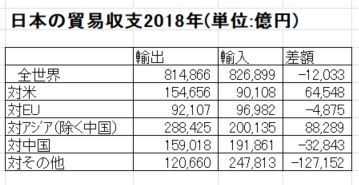 ☆ 日本の貿易も米国第一主義を掲げるトランプ大統領の影響下にジワジワと浸食されている。 昨年までは、日本の貿易収支では地域としては「中国を除くアジア」が8.8兆円の黒字であるが、1国としては米国が6.5兆円と群を抜いていた。 これが、今年1月度では、様子が少し違っている。 対米貿易収支は、3,674億円と前年の月平均5,379億円を下回っている。 この動きは、対米国だけの話ではない。 「米国輸出の減少」は、対米輸出を行っている中国の生産にも大きな影響を与えているのである。 昨年の、日本の対中国貿易収支は、▲3.3兆円(月平均▲2.7千憶円)であったが、ことし1月度には▲8.8千億円と赤字幅が増えている。 日本や中国での「対米向け輸出企業」が生産を縮小して「貿易のメリット」を失いつつあるのである。☆ 日本の対米輸出を見てみる。 昨年は、自動車等関連の輸出を抑えて、対米黒字幅の縮小を図った。 今年1月は、米国からの原油等輸入の増大に沿って、自動車等輸出を7か月ぶりに回復させている。 他方で、対中国貿易を見ると、昨年には旺盛であった中国向けの電子部品等輸出が中国本土の輸出産業の鎮静化に伴い、今年1月度には大幅に減少している。 ちなみに、中国の経済成長は、米国との経済摩擦の影響を受けて昨年の10~12月期の実質GDPでみて、前年同月比6.4%と、リーマンショック直後(2009年1~3月期)以来の低水準となった。 わが国にとっての救いは、今まで原油価格の上昇が貿易収支を絞めてきたのが、原油価格の下落傾向が見え始めたことである。☆ 本来、必要なはずの米中会談が、人気取りのための米朝会談に優先権が奪われている現状では、世界の景気が滞ってしまいそうである。☆ 貿易による世界経済の発展が阻害される現状を経済学者は見逃すであろうか? トランプ氏の裸の王様を気付かせる経済学者が今年の「ノーベル・経済学賞の受賞者」ではあるまいか? トランプ氏の「ノーベル平和賞」は、「武器商人の性格を持つ人」だから「忖度を世界に求めても」その価値はノルウェーでも認められないであろう。☆