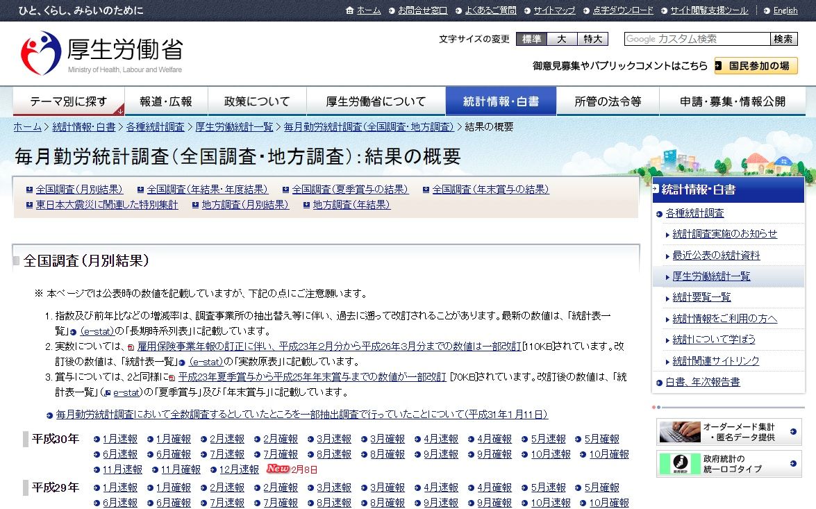 ☆小生ほど統計には素人のものはいないかも知れない。全数を調査するのであれば、悉皆調査なのでそのままの数字が合計で出る。しかし、全数調査だと、例えば5年や10年毎の調査であれば大変な労働力を使えば可能かも知れない。 わが国でも、国勢調査などはほぼ全数調査に近い調査だと思われる。 ところが毎月勤労統計のように、毎月の労働者の賃金などを把握する場合は大量のデータを集めて集計することは時間的にも費用的にも不可能である。 統計とは、全体の母数を推計する方法だと思う。 統計の目的を明確にしてその推計する母数に近い標本構成を選び出していくことから始まる。 もっとも単純に考えれば、例えば母数の特徴を示す、業種、規模などを、標本の構成と一致させて、統計的に意味のある標本数以上の標本を集めて統計的に処理する。 母数の構成と甚だしく異なれば、統計的に標本を選び直す必要があるだろう。 結局母数の動きを代表するような標本を選ぶことが望ましいということになる。 母数の動きを代表する標本の構成をできるだけ変えないほうがいいのだが、1.標本が倒産などでで消滅したり、2.抽出調査のための負担を軽減するよう サンプルを少しでも入れ替えようとする3.その他標本入れ替え時期がある。 東京都の場合は、一定規模以上の標本は全数調査、一定規模以下の標本はサンプル調査であった。 ところが、調査機関の手数が嵩むために、一定規模以上の全数調査をサンプル調査で勝手に行ったので統計的な手法云々以前の、決められた統計手法に則っとっていない違反行為となった。 ある程度の標本数があり、母数との種々の構成(規模など)が同程度であれば、母数の動きが掴めるというのが統計的手法なのだと思う。 できるだけ、その標本や構成は変えないほうがいいのだが、サンプルの固定化は当該企業の調査における負担が続くから、一定の期間で一部入れ替える必要もある。 小生は、一斉に入れ替えるのではなく、少しのサンプルを入れ替えて、少し期間をダブらせて水準を「新旧」で合わせる必要があるように感じる。 巷でいうような、サンプルが全く同じ企業群でないと伸び率が比較できないというのは、全数調査と同じ概念で言っているように思う。 ある程度の調査数で、母数とほぼ同じ構成であれば母数の動きをかなり代表できるはずであり、標本の切り替え時期をダブらせて水準を合わすことで母数の動きを辿れると思う。 毎月勤労統計は、標本の違反や継続などを問題にしているが大事なことを見落としている。 それは、労働者の構成が「正規労働者」、「非正規労働者」など多様化している。 さらに、「外国人労働」、「若者の非正規化」、「主婦の労働力化」、「高齢者の労働継続」(⇒労働のシェアリングを含む)などなどで、毎年のように変化しているから、「母数自体の構成が大きく変化」しているだろう。 母数の「構成を一定に定めた」のでは実体のマクロの動きは把握できないのである。 国会であれこれ文句が出ても、全数調査に近い国勢調査ならともかくも、毎月の動きを把握する勤労調査には限界がある話である。 呆けの小生が考えても、国際化の中で日本は高い労働力で国際競争を勝ち抜くことは不可能である。 格安の製品が中国などから輸入されるなかでは、国内の平均賃金は、海外物価につられて引き下げられるはずであり、外国人労働者の流入で、国内では「パートの労働力」、「高齢者利用」、「若者などの非正規化」などなどが労働市場に参加している。 政府は経団連などに賃金引き上げを要請しているが、一部の大企業の正規雇用の賃金を上げるとしても、大企業の「時短シェア促進」、「残業の削減」などで時間当たり賃金は伸び悩み、他方で賃金の安い労働の流入から、総じて「平均賃金は下がり気味」であろう。 ここで、毎月勤労統計が平均賃金の動きを示しても、母数の勤労者賃金の動きをトレースできている可能性は非常に少ないはずである。 首相や野党も賃金が上がった、下がったとこの統計で言えるはずはなかろう。 最近の国会を見ていると、小生のように統計の解らないものが声を無意味に荒げているようだ。 国勢調査などを待って、国会で議論すべきであるように感じる次第である。 もっとも、「国勢調査の期間のうちに与党・野党が変わる」世の中という矛盾もあるのだが・・・☆