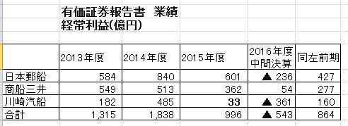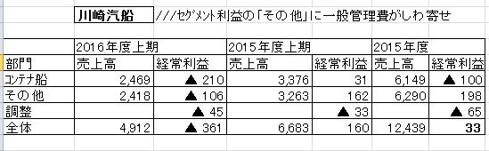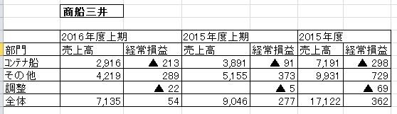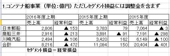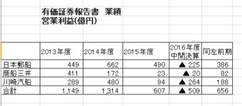 コンテナ船部門 は3社とも、大幅な赤字部門となっているが、