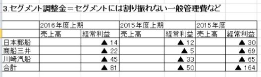 3.しかし、 調整金 が今上期に▲81億円あるから、これを部門別売上高比で