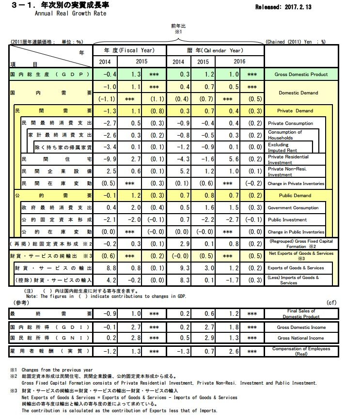 内閣府が発表した GDPの2016年度第3[四半期速報]QQE