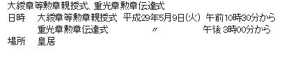 < 昨年の叙勲 重光章勲章伝達式の事例