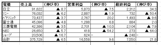 最終利益は21.8%増加、日立、富士通以外は減益、