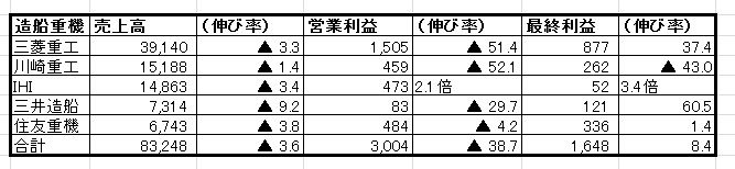 最終利益は8.4%増加、川崎重工が大幅減益、住友重機が横ばい、