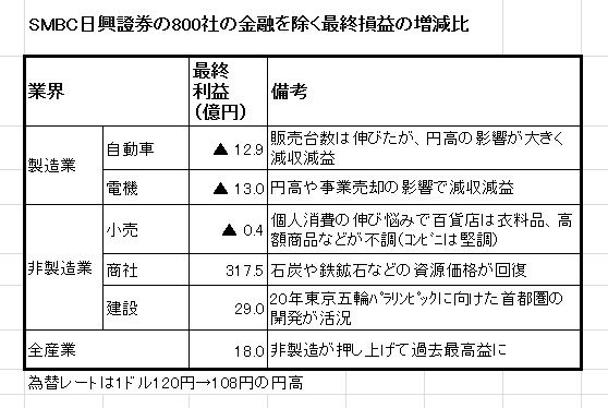 SMBC日興證券の東証一部 800社 )の2017/3期決算について、
