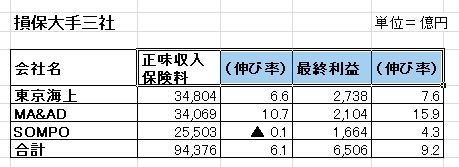 ・台風等の自然災害の保険金支払いが減ったこと、自動車事故発生の減少などで