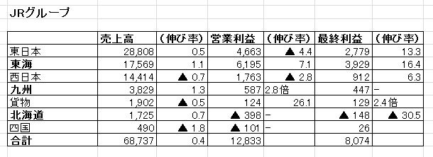 ・東日本、東海、西日本、九州、貨物の5社の最終利益は過去最高