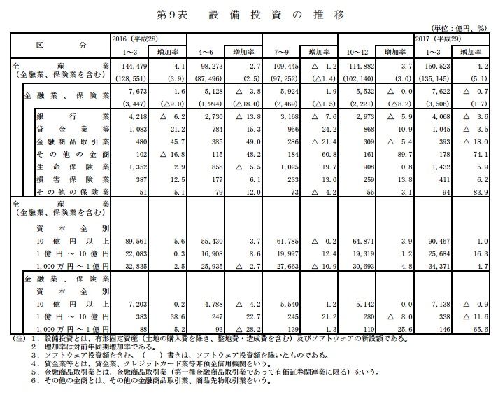 全産業 の設備投資は前年同期比4.2%の増加となり、