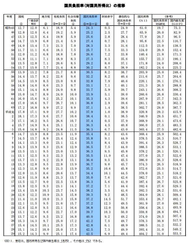 ​潜在的国民負担率=国民負担率+財政赤字​