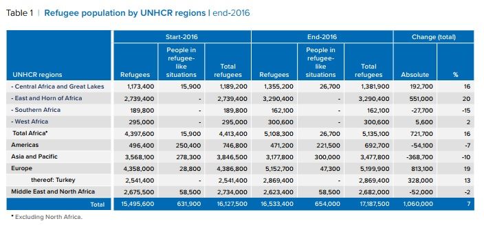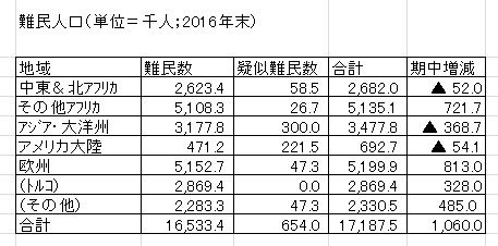 ・UNHCR地域別難民人口(=17.2百万人)​の再編成